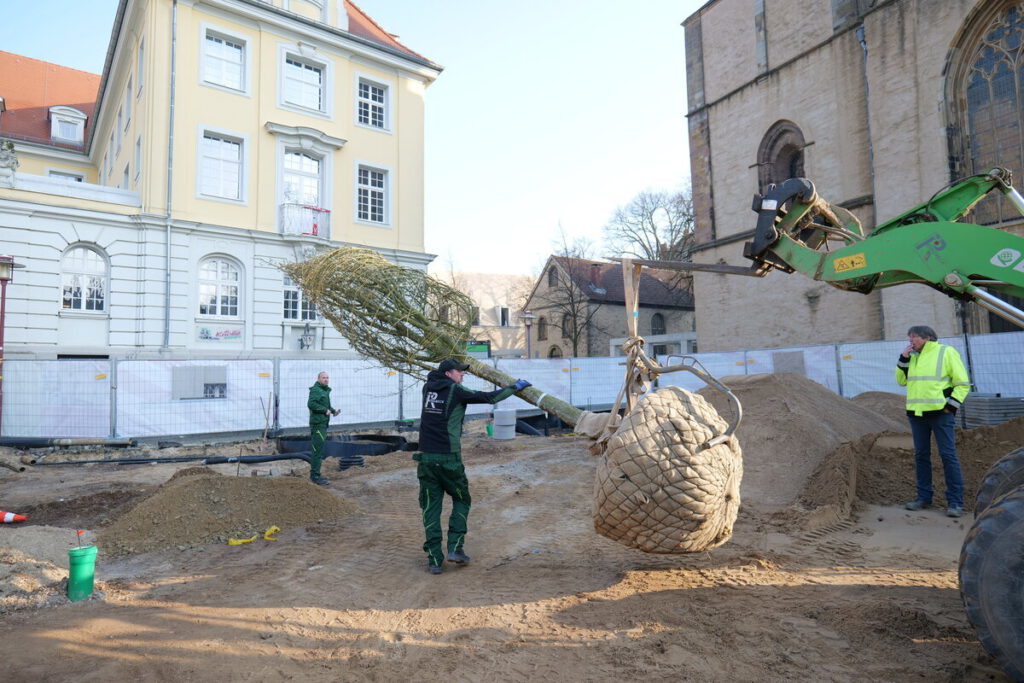 Im Zuge des Umbaus des Rathausplatzes wurden in den vergangenen Wochen zunächst die Baumgruben hergestellt und mit speziellem Baumsubstrat befüllt. Am Mittwoch konnten nun insgesamt sechs neue Bäume auf dem Platz gepflanzt werden.